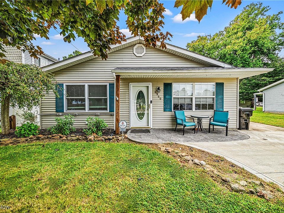 Welcome home to main floor living with lake views from your very own front yard! This ranch home has some WOW factors you will not want to miss. The kitchen was fully remodeled with granite counters, recessed lighting, a very large island and a double sided gas fireplace leading into the living room. You have nice size bedrooms and a primary bedroom with a connecting half bath. A gorgeous covered gazebo that can be used all year round with a stone built wood fireplace, built-in live edge bar and mini fridge. The gazebo is open to a dog run along the side of the home and a small yard for low maintenance living. The 1 car garage holds the space of a 2 car garage which is heated with its own furnace and LED lighting throughout. The hot tub will be removed and all TV mounts will stay. Schedule your private viewing as this is one you must see in person to truly appreciate.