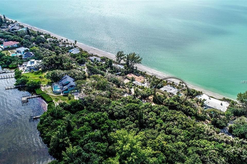 For those who have dreamed of life on sun-kissed shores, this beach cottage on Manasota Key offers a front row seat to the cinematic majesty of the sea and sky. The three-bedroom residence offers an Old-Florida ambiance blended with a detailed 2010 renovation that accommodates the contemporary way of life. A pebbled driveway and entry courtyard open to a light, bright, and airy floor plan centered on picture-perfect beach views. Entertain in the living room framed by travertine floors, wood-planked ceilings, and a cozy fireplace with stone surround. Prepare sumptuous family meals in the beautifully remodeled gourmet kitchen, equipped with gas range and center island. The dining and family room extend off the kitchen, creating a cohesive environment for enjoy long hours spent with loved ones. The master is imbued with the serenity of the shore, offering sliding glass doors that open to the sound of waves and palm fronds in the gentle breeze. Two guest rooms abound on the upper floor for comfort and privacy. A wealth of outdoor spaces - a gracious covered lanai, pool deck, and balcony keep you in tune with nature. A heated splash pool was added in 2010, ideal for relaxing after a long day. The piece de resistance is your private boardwalk to the beach where multi-hued sunsets are the perfect cap on your perfect day.