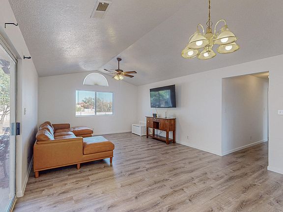 Huge price reduction! Beautiful home located in Rio Rancho's Enchanted Hills community! Homes features 1348 sf with 3 bedrooms and 2 bathrooms, large living area and an attached garage! Stainless steel appliances. Fresh paint. No polybutylene. Side access to large backyard. Separate formal dining area possible. Refridgerated air. Great yard, fully walled back yard with covered patio!