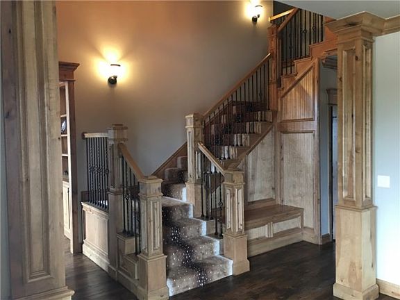 This English Tudor home is like something you'd find in the mountains with rustic chic interior and cedar attributes on the exterior. There are hand scraped hardwood floors throughout the bottom floor except for travertine in the powder bath and laundry. Granite countertops sit on all stained wood, custom cabinets in the kitchen and spa like bathrooms. Upgraded carpets have been placed in the bedrooms and patterned carpet on the stairs and media room. The study has a wall of bookcases and cabinets perfect for any home office. There are designer lights and fixtures throughout and designer tile in the bathrooms. The custom woodwork is too extensive to mention and the craftsmanship is phenomenal. You really have to see it in person. This home sits on a beautiful corner lot across from an empty lot with various wildlife and trees.