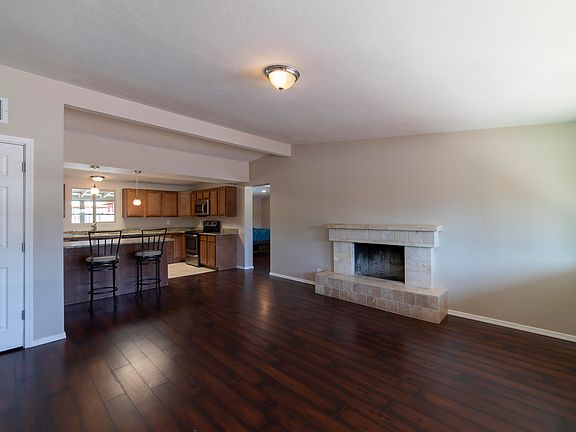 Amazing burnt adobe home with a pool! This wonderful well maintained home features 3 bedrooms, 2 bathrooms, plus a den/rec room! The living area and kitchen are open concept and make it great for entertaining. The dark wood cabinets, granite counter tops, and stainless appliances will wow you and you'll love the wood burning fireplace! The home features wood and ceramic tile throughout making it feel clean and bright. Use the flex room as a den, bedroom, or rec room. There have been updates throughout from the paint, to the doors, to the bathrooms, and dual pane windows! Wow! This home will continue to impress out back. You will find a large covered patio, storage with cement foundation, and a sparkling pool. Enjoy your summers in the pool and your winters inside by the fireplace! Must see