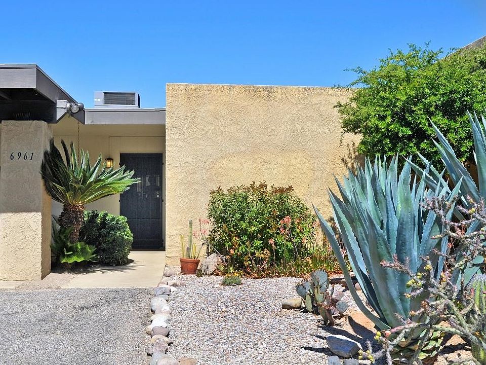 Wonderfully maintained townhouse with unobstructed views of the Catalina Mtns! Split floorplan with 3rd bdrm/ Den ideal for visiting guests or home office. Light & bright kitchen opens up to screen enclosed wraparound back patio. Enjoy the large Great Rm w/ cozy wood-burning beehive fireplace and tranquil views of the desert wildlife. Ample storage space and new HVAC! Two community pools, spa, shuffleboard, tennis and basketball courts. Enjoy low maintenance living near Sabino Canyon, Udall Park, river walk, shopping, restaurants and other amenities.