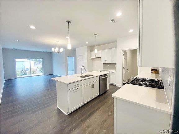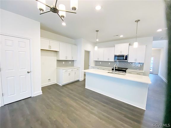 Welcome to the Franklin by Main Street Homes! This Energy Star certified, 2 story interior townhome features 3 bedrooms, 2.5 baths, oak stairs, tankless water heater, covered patio with backyard, front entry 2-car garage, and 2,198 living sq. ft. The first floor offers an primary bedroom and ensuite bathroom with ceramic tile shower, double bowl vanity, and large walk-in closet. The family room, dining area, powder room, mudroom with washer/dryer hookup, and gourmet kitchen with quartz countertops, ceramic tile backsplash, stainless-steel appliances, large kitchen island, and pantry completes the first level. The second floor features a large loft area, 2 guest bedrooms, full bathroom, and laundry room. Cosby Village amenities include a clubhouse with fitness center, a resort style pool, dog park, community garden, paved sidewalks with pocket parks, and walking trails. Cosby Village will give you low maintenance living right off Hull Street Road and Otterdale Road in a top ranked school district near shops and dining.