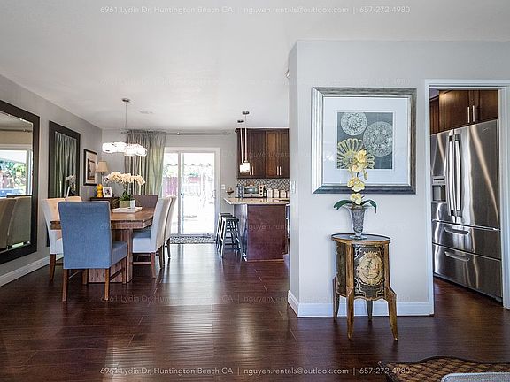 Available For Lease January 1, 2023. Showing By Appointments Only. Please Do Not Disturb Current Tenants. Easily entertain with an open layout floor plan, peninsula bar seating and modern kitchen. Includes granite countertops, stainless steel dishwasher, stainless steel gas range/oven, and a custom-built whitewashed pantry. Central AC heating/cooling with smart thermostat and double paned windows. Covered patio with organic orange trees in the backyard for summer entertaining. 2 car garage with laundry hookup. Extra-large master suite with two (his/hers) closets and seating area. Custom built dual vanity in master bath. 405 Freeway easily accessible. Walking distance to huge park with public tennis, basketball courts and baseball field. Biking distance to Bella Terra shopping center, Huntington Library, Golden West College and the Pacific Ocean. - 3 Bed / 2 Bath / Single Story House - Sorry, No pets and No smoking - Credit Check and Proof of Income Required - Tenant to pay for all utilities and lawn service. - Security deposit and first month's rent due at signing Available For Lease 1/1/23. Do Not Disturb Tenants.
