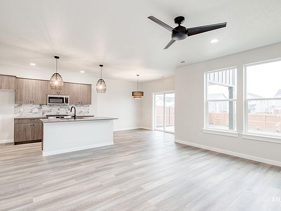 This brand new home located in vibrant Boise, Idaho welcomes you with open arms. Welcome home to the timeless Poe 1471! Here you'll enjoy a thoughtfully laid out living space with an open concept main level and all three bedrooms tucked upstairs. The kitchen boasts upgraded finishes, including stainless steel appliances, a gas range, and stylish solid surface countertops. The kitchen island overlooks the living area so you can host guests while staying at the center of the action. Easily slip outside for some fresh air on the back patio off the dining room. Retreat upstairs where the primary suite and two other bedrooms await. Full landscaping and full fencing are included with the home! Photos are of the actual home!