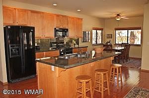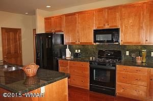 Beautiful, Custom, Log Sided Pinetop Country Club Cabin. Home Features Open Split Floor plan, Great room, Vaulted T & G ceilings, Beautiful Rock fireplace, Maple Floors and custom Maple Cabinets, Granite Counters Large Lot, Covered Decks, Master has separate Shower and Garden Tub, walk in closet.