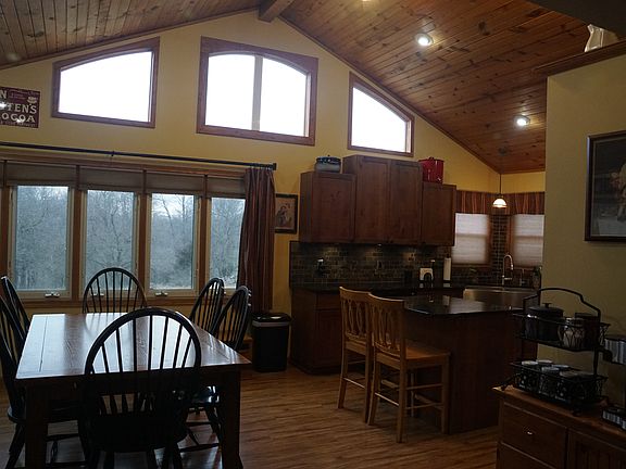 3+ bedroom, 2 3/4 bath house, sits on 4 lots, 1.76 acres. Huge 14' x 24' kitchen with vaulted ceiling, knotty alder cabinets, granite countertops and french doors to a large deck. All stainless appliances in kitchen included. Finished walkout basement with large family room and second kitchen. 3 car heated and finished attached garage and 24' x 32' detached heated and finished workshop/garage. Easy access to Hwy 44. Motivated seller! Mark 515-975-7016