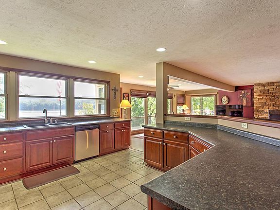 Stunning riverfront home w/ breathtaking views from every room! Grand entry, gourmet kitchen, counter bar, dining room, large great room w/ stone fireplace, and balcony deck. Lower level ideal for 3rd bedroom, game room, family room, or workout center. Enjoy the river views from one of the many decks or your own hot tub. Private dock included!