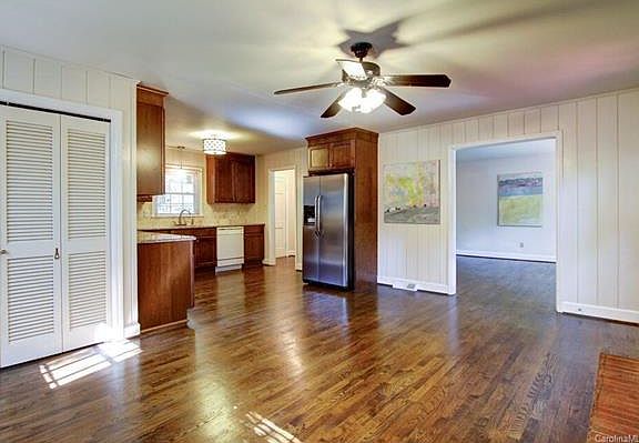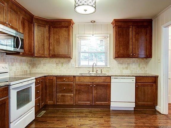 Immaculate, brick ranch in sought after Starmount. Completely renovated kitchen with new cabinetry, granite countertops, tumbled stone backsplash and brand new ss refrigerator. Beautiful hardwood floors throughout! Large, spacious rooms with open floor plan. Wood burning fireplace in breakfast/dining area off of kitchen. Large, flat lot with private, fenced backyard and great deck with porch swing! All new Low E Duke vinyl windows installed 2015. Roof 2012. HVAC/furnace installed 2012.