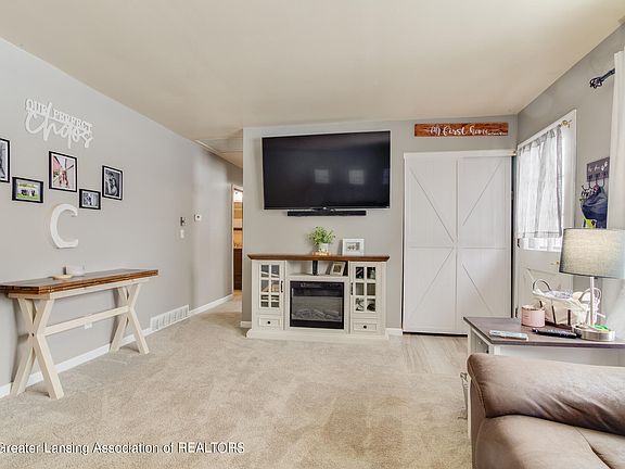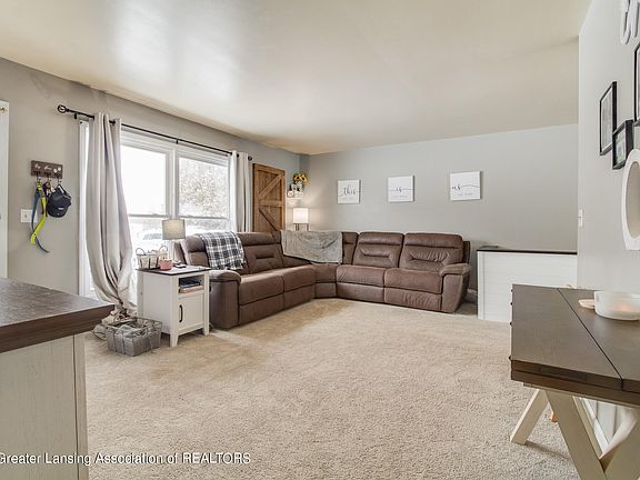 Welcome to 6963 S Stine Rd Olivet, MI 49076! This 3 bedroom, 2 full bath home is situated on just over an acre and includes many updates! The cozy living room boasts lots of natural light from the large front windows and features a new closet barn door. The updated kitchen is complete with new flooring, sink, countertops, backslash, white cabinets and a sliding glass door out to the back deck. Down the hall are 3 bedrooms, including a master with an updated master bathroom. Downstairs is a partially finished walkout basement, with a concrete patio out the spacious backyard which includes a pole barn featuring concrete floors, drywall, electricity, and a ceiling furnace. The entire home has a fresh coat of paint, new carpeting, trim, and bedroom doors as well as a new well and septic in 2021, and a new washer in 2022.