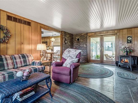 Welcome Home! Beautiful 3 bedroom sitting on over 3 acres of well-manicured, partially tree lined lot. Eat-in Kitchen boasts plenty of storage with upper/lower cabinets and walk-in pantry. Hardwoods flow into the FR that is complimented by pellet stove, brick accent walls & ceramic tile along the perimeter to double as a mudroom/entry, you can access both garage & unheated Florida room separated by french doors. LR/Dr combo both carpeted w/ hardwoods underneath. All Bedrooms are HWD, Master features dual closets & additional bath w/ no step shower. Exterior property features: Covered front porch, Large blacktop drive w/ turnaround, attached garage, detached garage (-5yrs old) w/ steel roof, and shed.