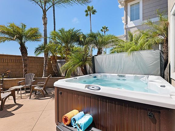 Extras: Central air conditioning, abundant natural light, backyard hot tub with extra seating and BBQ, and attached garage parking. Back of property faces west with no homes behind, offering privacy and occasional sounds of waves crashing or the scent of campfire cooking from the ocean campgrounds across the street. Neighborhood amenities include basketball, pickleball, volleyball, and a playground. Dogs are welcome.