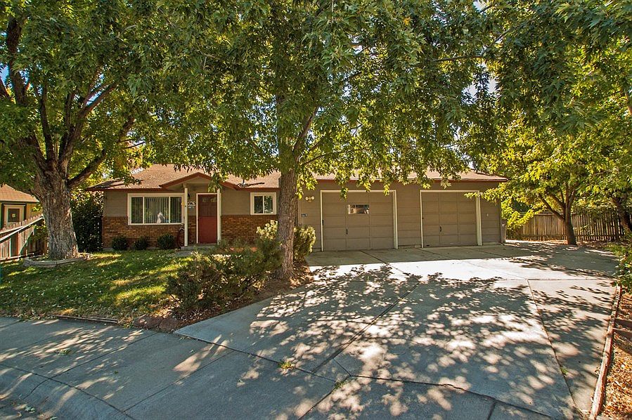 Nice property in a cul de sac. Sides to a park. 27 foot bay of garage, other bay is 29 feet deep. Newer paint, carpet and vinyl as well as light fixtures. Refrigerator is included. Front deck. Rear cement patio and room for a garden. Great location near foothills and shopping!