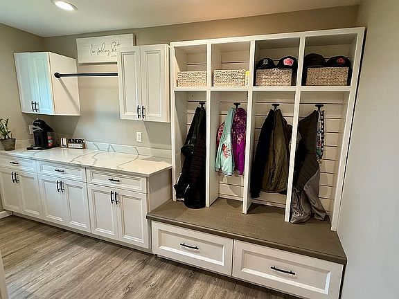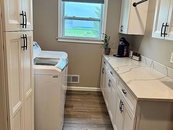 Garage Space Galore in Frankenlust Township! Situated on over an acre this spacious, move in ready 3 bedroom, 3 full bathroom ranch offers city amenities with a private backyard for stunning sunsets. Minus a few exterior touches this home has been completely renovated featuring an open-concept layout with a spacious living room and kitchen with leathered quartzite countertops. Off the attached garage step into a graceful, oversized laundry room that features granite countertops and built-in lockers. Adjacent to the laundry room, you’ll find a spacious walk-in pantry. The primary suite includes a walk-in closet and en-suite bath featuring a tiled shower. The finished basement provides additional living space and storage area. Every major system including AC unit, furnace, hot water heater, and roof have been upgraded for your peace of mind. Amenities include city water/sewer, natural gas, and Verizon/Charter internet. Located close to Delta collage it is rare for power outages but just in case it is wired with a 50-amp plug for generator backup. Outside, a large 36 x 54 finished pole barn built in 2020 offers incredible versatility for storage, hobbies, a workshop, or even a small business setup. The pole barn offers 14 feet tall walls and is spray foam insulated with its own furnace keeping it right at desired temperature all winter long while being economically feasible. Beyond the pole barn and attached two-car garage there’s an additional single car garage for cold storage. Mostly surrounded by open fields the large backyard also features a garden, fruit trees, clothesline, and a fire pit. If you have children just a short bike ride or walk down Amelith Road you will find a local church park and ball field for entertainment.