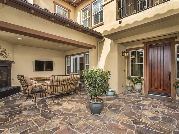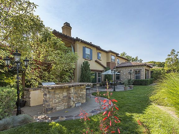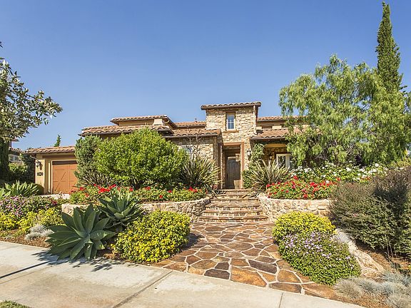 Elegant home with impeccable quality appointments in prestigious gated La Costa Ridge! From its stone courtyard entrance w/fireplace & covered loggia, take notice of the stunning architectural details, indoor/outdoor living, open floor plan, secluded & beautifully landscaped pool size lot. Interior includes distressed wood & travertine flooring, carpet replaced in 2017, 4 fireplaces, chef’s kitchen, en-suite 1st floor bedroom, master retreat w fplc, verandas & views. See Supplement Designed for entertaining family and friends, inside and out, with gathering rooms, seating areas, courtyards, balconies, covered loggia with bar, TV & fireplace. Additional features include crown molding on the 1st floor and master suite, shutters on all upstairs bedroom windows, fabulous chef’s kitchen (with butler pantry, enormous granite island, 6-burner cook top with griddle, double ovens, warming drawer, 2 dishwashers) which opens into the charming family room, breakfast area, living room overlooking beautiful gardens. Formal dining room features striking stone wall with fireplace. Romantic master suite retreat has sitting area, fireplace, balconies, views, his and hers walk-in closets, and spa-like bath. The loft/office has a balcony with ocean and mountain views. Downstairs there is also a 5th bedroom and a parlor/library. The estate offers indoor/outdoor living on a private, lusciously landscaped 15,332 square foot useable lot on a cul-de-sac. There is a 3-car garage with extra storage space or work area. The exterior area includes a custom-built BBQ area, mature trees, meandering garden paths, water fountain, conversation areas with fire pit, fireplace, and privacy! La Costa Ridge is a very desirable community, minutes to shopping, La Costa and Aviara resorts, fine dining, golf and the beach. You must see this outstanding home!