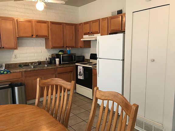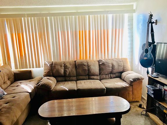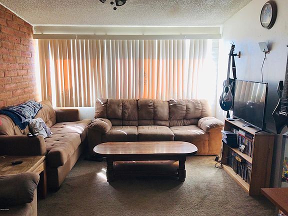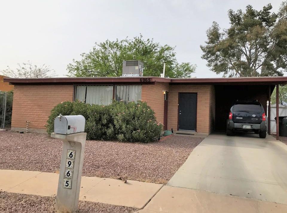 Ideally located 2 bedroom brick home at the end of a cul de sac with north facing back yard and mountain views. You will love the space in this home. Big living room with red brick wall at the front has plenty of room for entertaining. Updated kitchen has shaker style cabinets and granite look counters. Tile floors and seller will replace carpeting at closing. Great location near Davis Monthan Air Force Base, schools, park, shopping. Carport has attached storage and there is a separate yard with a large free standing shed. Enjoy the mountain views, separate play yard with swing set/slide, and mature landscape. This could be your perfect home at an affordable price in a nice, convenient neighborhood. Ask about down payment assistance programs available