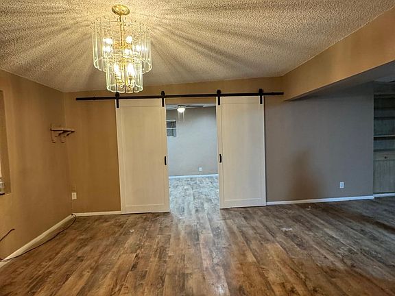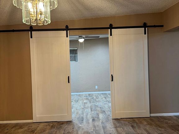 Recent upgrades: new lighting package (ceiling lights + chandelier), new ceiling fans, new barn door, and fresh interior paint
