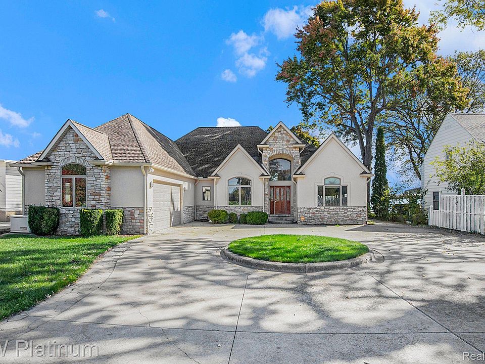 Don't Miss this Spectacular River Front 3 Bed Spilt Ranch with over 1.4 acres of property with an Amazing View of the St Clair River. Elevated Architectural Design with Stucco and Stone finishes. Attached Two Car Garage with a Detached 2-Story, Two Car Garage with 220 Power. Open Concept with a Great Room with Expansive Windows to View the Freighters and High Ceilings and Wood Floors with a Natural Gas Stone Fireplace. Amazing Up Scale Kitchen with Luxurious Cambria Counter Tops, Custom Lafata Cabinets and Stainless Wolf & Sub Zero Appliances. Expansive Private Primary Suite has a River View with a Massive Ensuite Bath with Heated Floors, Jetted Tub and Custom Rain Fall Shower with Wall Jets and a "Mr Steam Shower System". Walk in Closet is outfitted with a California Closet System. Both 2nd & 3rd Bedrooms Have River Views with Plenty of Closet Space. Additional 1.5 Baths and a Future Climate Controlled Wine Cellar. Include a Formal Dining Room and Office. House has a Dry 4ft Cement Crawl Space that is Lighted. Circle Driveway, Paver Patio, Dock with Covered 20,000 LB Capacity Boat Hoist that will hold a 36ft Boat. Amazing River Views from Every Direction while Relaxing on Your Back Yard Paradise! Updates include: New Asphalt Driveway in 2023, New Stucco in 2023, New Commercial Gutters and Downspouts in 2023, New HW in 2023. This property also has a Generac Whole House Generator, 13 Zone Sprinkler System for the whole property, Vivint Home Security System and a transferrable Choice Home Warranty for all of the Appliances. This is a Must See! Schedule Your Showing Today!
