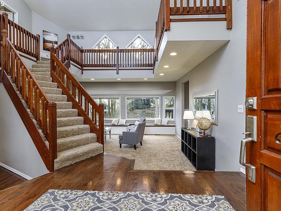 Stylish, light filled Burntwood West Contemporary lives large! Living room & staircase open to vaulted 2nd story. Spacious chefs kitchen has room to gather w/fabulous quartz topped island, stainless & bay nook. Romantic master retreat w/fireplace, bath suite & french doors to balcony. Each bdrm has balcony/deck. Family/media room w/fireplace & door to backyard. Huge fenced yard w/deck, patio & room to play. Ideal location! Welcome Home!