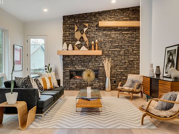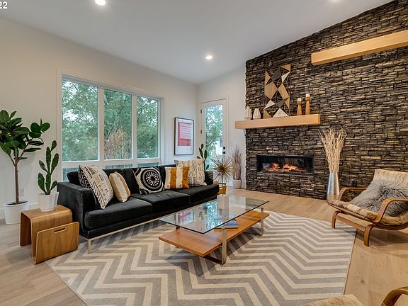 Spectacular new construction with a mid-century vibe across from Gabriel Park and all it has to offer. Tucked off the main road this gorgeous home is bathed in natural light and features a stunning floor to ceiling stack stone wall with linear fireplace. Well-appointed kitchen features Bosch appliances, 5-burner gas stove, built-ins, island with seating, quartz counters with an abundance of counter space and storage making this the perfect kitchen for your inner chef and entertaining. Large laundry room includes a sink and more cabinetry for storage. Enjoy the spa-like primary bath with soak tub and separate shower. Lower-level family room has a wet bar, wine cooler and slider to large patio for entertaining or just relaxing. This is a must see to truly appreciate the attention to detail and finishes. [Home Energy Score = 3. HES Report at https://rpt.greenbuildingregistry.com/hes/OR10206784]