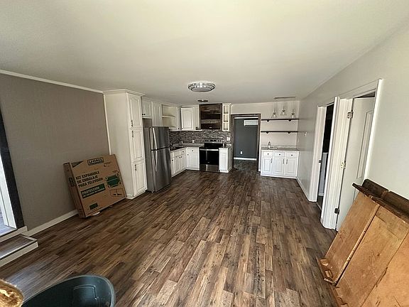 Approx 1,300 sq ft home attached to a massive 1,800 sq ft garage, sitting on 3+ acres with a barn and excellent road frontage—right beside the lake.