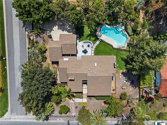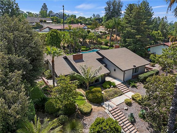 Hawarden Drive- Seldom available single story, pool home, fully gated, RV parking, and recently updated. Newer flooring, exterior paint, pool equipment, heater, lighting, and fencing, along with thousands spent on updating the professionally designed landscape. New outdoor firepit and sitting area for large scale entertaining. Three car garage with 3rd bay ideal for small RV, work truck or stackable lift for two additional sports cars. Elevated view lot along the Gage Canal, this custom home is perched above the street behind a forest of unique palm, fruit, & evergreen trees. Custom wood trim & open beam ceilings inside give you a feeling of luxury & space while the multi-level floor plan creates an inviting living space. The living room features a gas fireplace and views of the mountains. The dining room's sliding door shows off how easy it will be to enjoy true California living in this home, multiple indoor/outdoor entertaining spaces. The updated kitchen features granite counters and Kitchen Aid appliances, as well as custom pull-out drawers in nearly every cabinet. The family room has a natural wood beamed ceiling creating a warm and inviting space. The fireplace has a custom brick hearth, built-in bookcases & storage. The skylight over the casual dining area & the oversized sliding door to the back patio adds natural light. The main bedroom has a third fireplace, vaulted ceilings & a private patio facing the front mountain views. The en-suite bathroom’s private garden courtyard creates a lovely space to unwind. The remaining 3 bedrooms, off the main hallway, are spacious rooms with plenty of storage. Outside, the long covered patio is accessed from both the dining & family rooms which adds additional space for entertaining. Your own private paradise awaits with a large pool & spa, as well as grassy areas & places for multiple gardens. The wide driveway has room for multiple vehicles, & the added RV garage is a bonus.