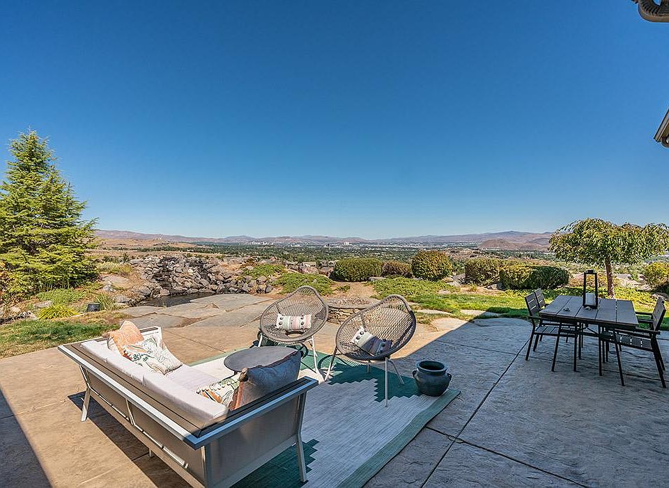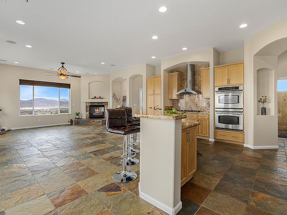 Stunning panoramic views from every room of the city, mountains, and valleys. This gorgeous and private, 4 bed, 3 bath semi-custom home in the desirable Southwest Vistas has been upgraded with slab granite, slate and travertine. All three baths have custom stone with frameless shower enclosures. The 1200 sq ft 4-car garage has a bonus workshop area and custom built cabinets for storage. The yard has a water feature that flows year round, a hot tub and gas fire pit for evenings, entertaining and gazing at the city lights. This amazing floorplan allows privacy as the master suite and separate office are on one side with the remaining 3 bedrooms and 2 baths on the other with one being a on-suite bedroom with private access to backyard. Backyard is partially fenced with a 4 ft rod iron fence. Special features: 3 patios with access from three of the bedrooms, GE monogram and Profile stainless steel appliances, surround sound with speakers throughout the home and patio area, master custom built-in closet, alarm system, gas stub for barbeque. Owner is NV real estate salesman. Yard and pond maintenance is included. Tenant pays for all utilities to include electric, natural gas, water, sewer and trash removal. Home interior will have new fresh paint and new carpet. Dog allowed on approval. Tenant is in process of moving out, please do not bother tenant, Tenant pays for water, sewer, garbage, gas, electricity, internet, cable. Non- Smoking. Pets - dogs only, on approval.
