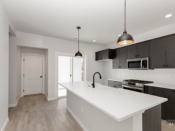 This new home located in beautiful Boise, Idaho has all the comforts you need & more! Experience contemporary living at its finest in the Carlton 1676. Enter to 9ft. ceilings that span across the main level. The kitchen boasts upgraded finishes, including stainless steel appliances, a gas range, and stylish solid surface countertops. The open-concept design allows for a seamless flow from one room to another. Venture upstairs to find three comfortable bedrooms, including the luxurious primary suite, complete with a tranquil en suite bathroom featuring a dual vanity and a spacious walk-in shower. An additional bonus room upstairs offers flexible space for a home office, playroom, or media center. Full fencing and landscaping is included with the home! Photos are actual home!