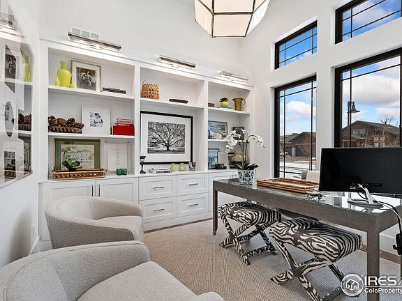 Sales price of $2.4M included $100,000 of furniture. Look no further for the Harmony home of your dreams. Owned by an interior decorator and built by NoCO Custom Homes, this exquisite property is filled with designer touches at every turn. Nestled against greenspace with breathtaking views of Longs Peak and the Rocky Mountains, this custom ranch-with a garden-level finished basement-offers an exceptional blend of elegance and comfort.Inside, soaring ceilings, wide-plank wood floors, and an open floor plan create a spacious, inviting atmosphere. The large chef's kitchen boasts an expansive pantry, a bar area with a beverage fridge, and a generous dining room with stunning views. The great room, anchored by a gorgeous fireplace and custom built-ins, is perfect for both relaxation and entertaining.A main-floor study features floor-to-ceiling custom cabinetry, while the luxurious primary retreat includes a spa-like bath with a steam shower, heated floors, and an oversized custom closet. Each secondary bedroom is generously sized, complete with a private, fully appointed bath and custom-built closets.The lower level showcases impeccable craftsmanship, featuring a cozy lounge with a stone fireplace and custom cabinetry, a spacious rec room, wet bar with ice maker and frig, gaming area, and a tiered-seating theater equipped with a projector and movie screen.Love outdoor living? Enjoy over 1,000 square feet of deck space with custom retractable screens, an outdoor kitchen, a fireplace, and stunning landscaping designed by Lindgren Landscape.Additional features include an oversized three-car garage with Milarc cabinetry and an epoxy floor, two laundry rooms, a home generator, remote-controlled window coverings, Visual Comfort lighting, and the option to purchase all furnishings.This is luxury living at its finest-schedule your showing today!