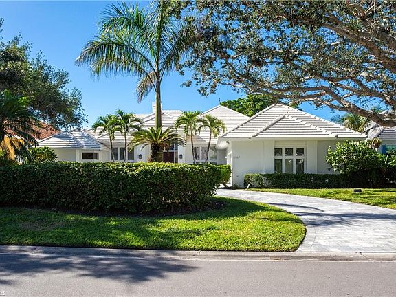 Stunning panoramic golf course and lake views abound. Light and bright best describe this lovely home. Interior features welcome you with beautiful wood flooring, statement fireplace, volume custom wood ceiling, updated kitchen and baths, spacious private primary suite, two en suite bedrooms and office could be used as a fourth bedroom. Living and Family rooms overlook the expansive lanai with large pool and spa that enjoys one of the best views in Pelican Bay. Perfect for outdoor living and entertaining. Exterior features include lush tropical landscape, circular paved drive and a new roof 2023. Pelican Bay is an amenity rich community. Residents enjoy three miles of beach with two private beachfront pavilions with restaurants, miles of walking paths, kayaks and canoes for resident use, tennis, pickle ball is coming soon and state of the art fitness center with spa. The Golf Club at Pelican Bay offers private membership. Centrally located between The Ritz Carlton Beach Resort and upscale Waterside Shops and Restaurants. This is the ultimate in Florida living.