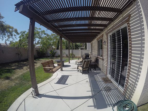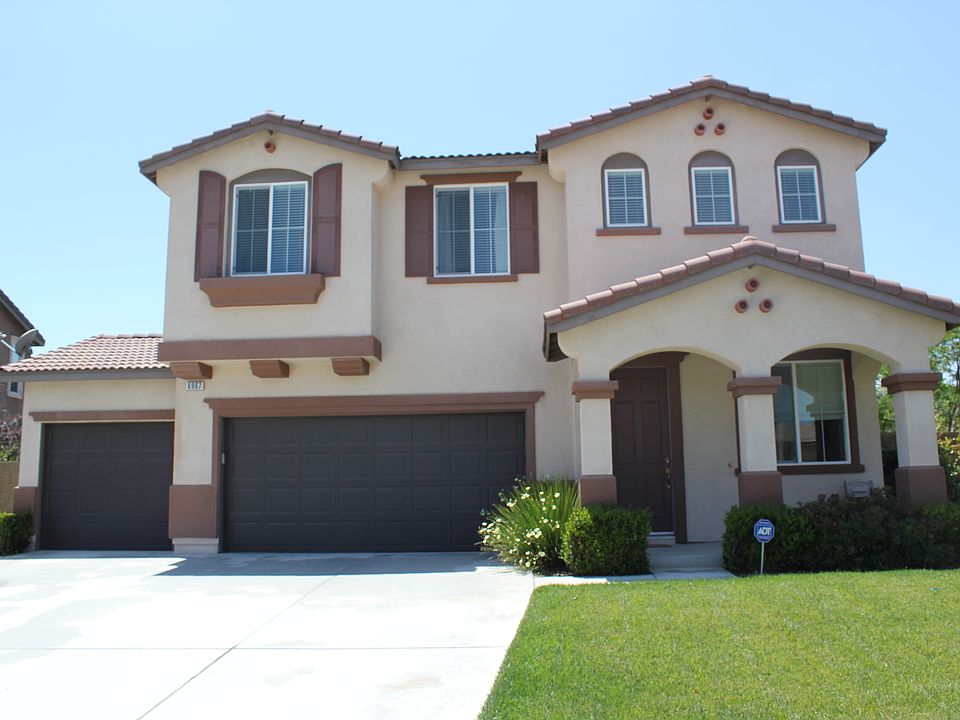 Cozy upgraded home in the center of Eastvale! 4 bedroom, 3 bath with double-pane windows throughout and beautiful hardwood flooring downstairs and carpet upstairs. Spacious kitchen with walk-in pantry, Whirlpool appliances, large center island, and dark wood cabinetry, opens up to the large family room with fireplace. One bedroom and bathroom downstairs. Huge bonus room with surround sound and laundry room, 3 bedrooms, and 2 full bathrooms upstairs. The over sized master bedroom includes a ceiling fan and media niche. Good sized master bathroom has separate tub/shower and walk in closet. Expansive backyard with patio is perfect for entertaining or relaxing with the family. The patio is already set up with natural gas hook-ups for both a fire-pit and barbecue. Quiet and peace area adjacent to brand new Eastvale Community Recreation Center!