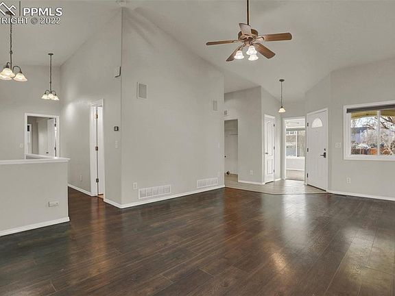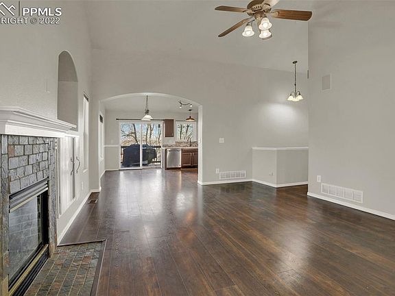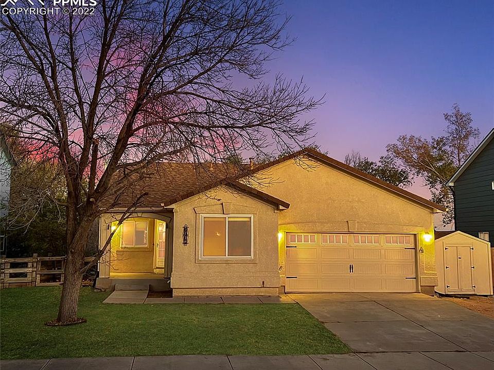 New Interior paint in this fabulous home is on a quiet road that backs up to a large park and open space. Step inside to find beautiful laminate plank hardwood flooring and vaulted ceilings in the living and dining areas. This Smart home includes garage remotes, a front door lock, and a thermostat that can be controlled through your phone. Cozy up in the living room next to the gas fireplace with built-ins. Cook and entertain in the fabulous eat-in kitchen with stainless steel appliances, solid surface counters, and ample cabinet and counter space. Three bedrooms, two bathrooms, and laundry complete the main level. The primary bedroom is spacious, with an ensuite bathroom, a large walk-in closet, and a private covered porch that connects to the oversized back deck. The basement is finished with a large family room, 2 large bedrooms, a Bonus room, a Storage room, and a full bathroom. This home is minutes away from I-25, Fort Carson, Powers Corridor, Fountain Creek Regional Park, and shopping. Heritage Subdivision also includes parks that attach to walking trails. Make this your home today!