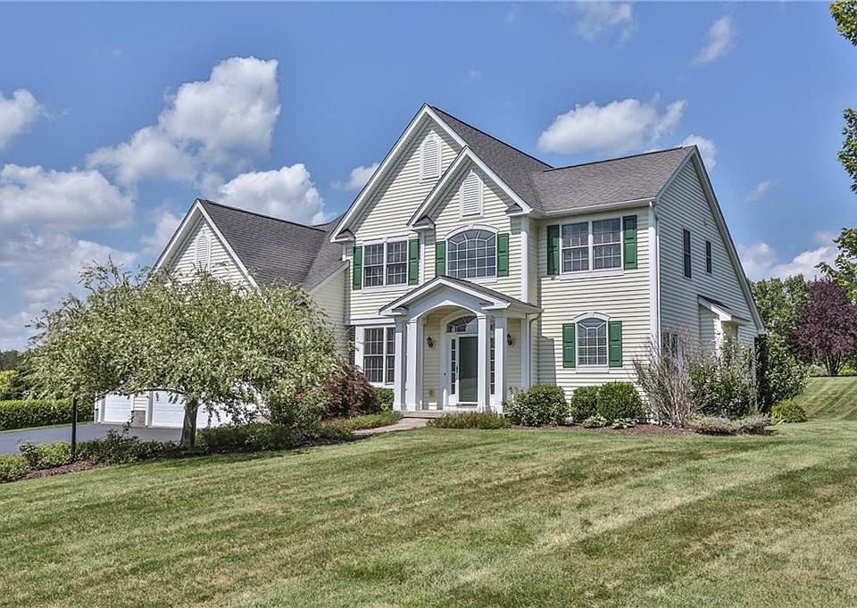 Wiley Estates Gem! Much sought after exquisite colonial/cape on quiet street. This home is flooded with beautiful natural light and picturesque views of nature. Home is located in a quiet neighborhood yet close to everything! The open floor plan affords a refreshing spacious feel . VERY VERSATILE FLOOR PLAN: Convenient first floor master suite can be used as a guest suite as there is a huge bonus room upstairs that could be a large master suite. The open-bright kitchen has sliding doors leading to a patio flanked with luscious fruit trees (2 cherry, 2 pear,1 apple, and 1 peach) along with raspberry bushes! A gorgeous back yard! The kitchen is white and bright with Corian Countertops. This 3 bedroom, 2.5 bath home with a 3-car garage will give you 2139 sq ft of generous space. It's Time To Be Home!" CLOSE TO SCHOOLS, SHOPPING & NYS THRUWAY - but no noise!