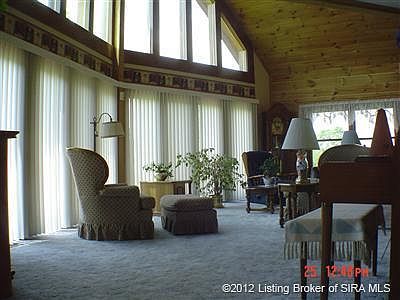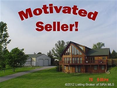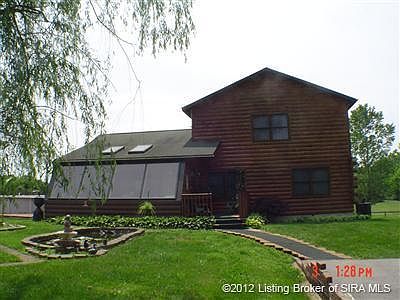REDUCED! Spacious log home close to Sellersburg on 5+ acres. Need more acreage? Another 9+/- acres is available! Seller will consider trade for smaller property. Home has 4-5 bedrooms, big kitchen w/island, vaulted great rm, and 20'x12' sun room bringing the outdoors inside. The private master bedroom sets apart from the other rms, has a large walk-in closet and loft setting area. The finished walkout basement has a nice family rm, as well as additional rooms for offices, crafts, and more. One of the main level bedrooms is now being used as an office and there is a combination pantry that could easily be converted to a first floor utility rm. The big 48'x72' garage w/auto lift, 14' overhead doors, 2 additional storage rms/workshop areas, and loft. 27'x30' (5) stall barn attached to garage. Aboveground 27'x4' pool with decking. Taxes based on larger tract, will need to be recalculated. Property subject to resurvey of south property line. Rm sizes & sq ftg approx.