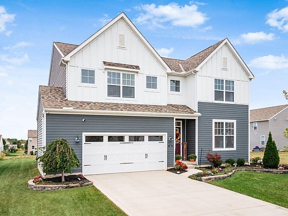 Stunning 4 bedroom home with over 3,100SF above ground, located in Canal Cove under a mile walk to downtown Canal Winchester! From the entry, you will fall in love with the gleaming LVT floors that flow through the entire first level with a private office w/ french doors, elegant dining room and a luxurious oversized kitchen and family room area! Mudroom with custom boot bench off the garage which features a 2 car garage and a 4 foot extension! The primary suite is HUGE! and has a tray ceiling, dual sinks and large walk in closet! 2nd floor laundry and custom built-in shelves in the loft area! The best patio in the area! Over 50K on this 800sf concrete and paver patio with a 12x14 pavilion accented with landscape lighting! Extra deep and flat backyard perfect for tons of activities!