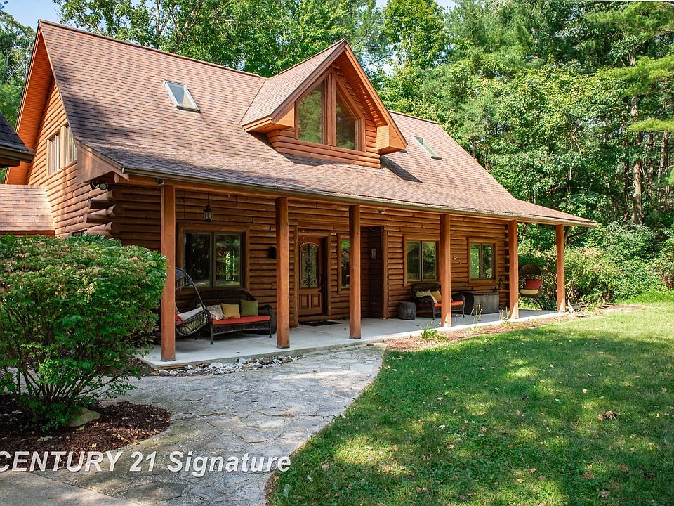 A serene escape just minutes from amenities is what you will find at 6969 N M30. Situated on 25 acres of woods and with over 900 feet of frontage of the Tobacco River stands a place ripe for making memories. The home seamlessly blends with its surroundings; boasting a stone fireplace, custom pine walls with vaulted ceilings and windows that allow you to always be immersed in nature. Having been remodeled to meet today’s modern way of living, this home has never flooded. Four gracious bedrooms and three baths will accommodate your family and guests. But if that is not enough, the lower level has additional finished space to live, learn, work and relax. A vast, four car garage allows you to store your vehicles and toys, while also having a place for projects. A rare opportunity, this property will allow you to relax and enjoy life.