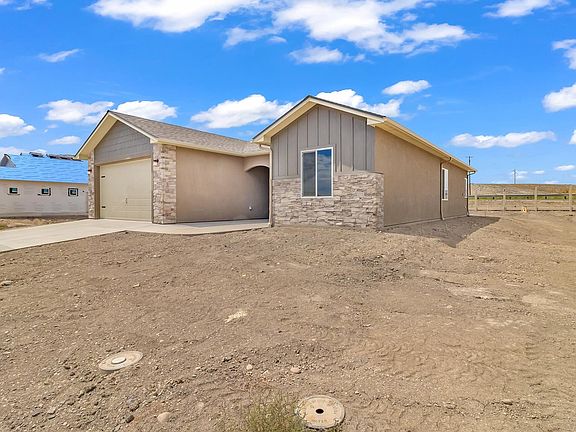 GORGEOUS new construction in Arabesque subdivision by On Track Builders! This stylish floor plan features an open and inviting layout with plenty of natural light adding a cheerful element to the sophisticated space! As you enter the front covered entry, you're ushered into the vaulted great room with plenty of windows that showcase the amazing view of Mount Garfield from your backyard! Open concept kitchen that offers plenty of upgraded cabinet storage, spacious pantry space and upgraded stainless appliances! Two bedrooms on the north side of the home feature walk-in closets and share a full bath, which boasts custom tile accents and upgraded vanity and fixtures! Desirable split floor plan puts the primary bedroom secluded on the south side of the home, that created a more relaxing and comfortable feel! Adjacent laundry room for convenience! Primary suite offers oversized walk-in closet and en-suite bathroom with dual vanities, freestanding tub and large walk-in shower! Great location near all area amenities, including grocery, restaurants and medical facilities, and just a short trip into town via Patterson! Seller will offer a Landscaping credit of $5,000 on an offer of $439,000!