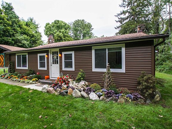 Charming ranch on 2 private acres. Totally redone throughout. Ideal for young or retiring couples. You will fall in love once you step inside. A full front porch welcomes you to this magical home. Updates include: new kitchen with gas stove, new flooring throughout, laundry room with barn door, new bathroom, new roof, new hot water heater. Wood wall accents throughout. 2 car garage converted to finished space and work shop. Spectacular yard, ideal for many uses. 1000 gallon concrete septic tank. Convenient commuter location.