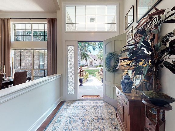 Beautiful well maintained all brick home that sits on a large water front lot. This all brick home features a formal living and dining room. Open floor plan to large family room with fire place, breakfast area and kitchen. Kitchen has granite countertop, stainless steel appliances and a gas stove. Large master suite that opens up to the 500 square foot bonus/sunroom and large walk in closet. Master bathroom with walk in shower, jetted tub and his and her sinks. The 4th bedroom has full bath and walk in closet. Beautiful wood floors through out main living area, 12 ft ceilings and crown molding throughout. Relax in your bonus/sunroom with fireplace that over looks the pond. Back yard has a pergola, water feature and a paver patio that leads to the pond with dock.