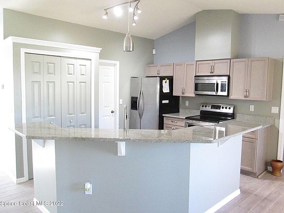 Fantastic rental home; open concept with vaulted ceiling gives a sense of spaciousness. Updated tile flooring throughout, updated baths, granite counters, cabinets and stainless appliances in this kitchen that is open to the breakfast and family rooms. The master bedroom has a walk in closet, double sinks in bath and tile shower. There are 2 other bedrooms and updated 2nd bath. There's a laundry room with a washer and dryer. Sliders from the family room open to enclosed year round porch with central air. The spacious backyard is fenced and has a shed, as well. A patio at the front of the house provides additional outdoor space. Centrally located just minutes from Walmart, Publix, CVS, I95 and all amenities. New roof 11/21, Appliances 2021, New Impact Windows 11/22, Guest Bath Update 10/21