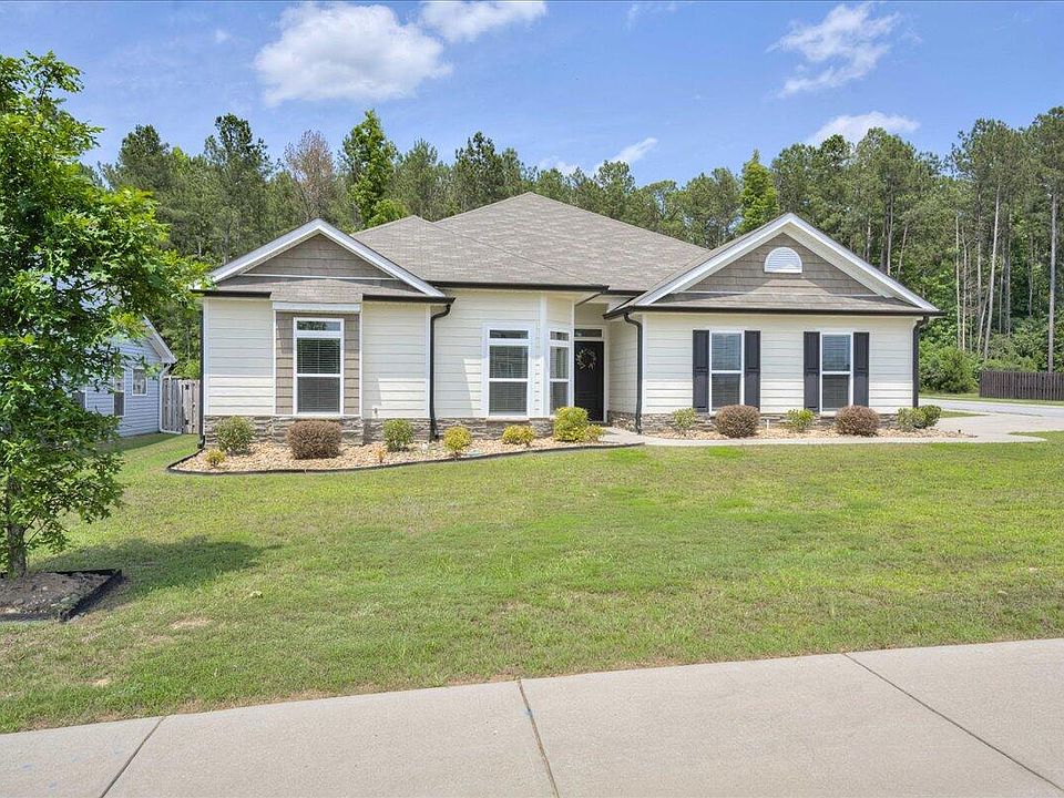 BACK ON MARKET through no fault of seller. New price and ready for YOU! Welcome to charming Willow Oak Village! This attractive 4BR/2BA ranch home is yours! A privacy lot with double garage w/side entry, fully fenced yard, multi-zoned sprinkler system, and gutters. Enjoy your covered back patio with lovely greenspace. This energy efficient home built by Bill Beazley Homes is nicely appointed. Private foyer at entrance, stoned fireplace in great room, and kitchen boasts granite counters, tiled backsplash, kitchen bar, and stainless steel appliances (refrigerator remains). Large eat-in kitchen area for dining. A light and bright interior with window blinds throughout. Owner's suite offers two walk-in closets, double basin sinks, a garden tub, and separate shower w/glass door. The Willow Oak community is enhanced with sidewalks, street lights, and an amazing pool. Ft. Eisenhower and the Columbia Country schools are nearby. Won't last long. Vacant and easy to show. Call Rose Marie or Shane today to schedule your private showing!