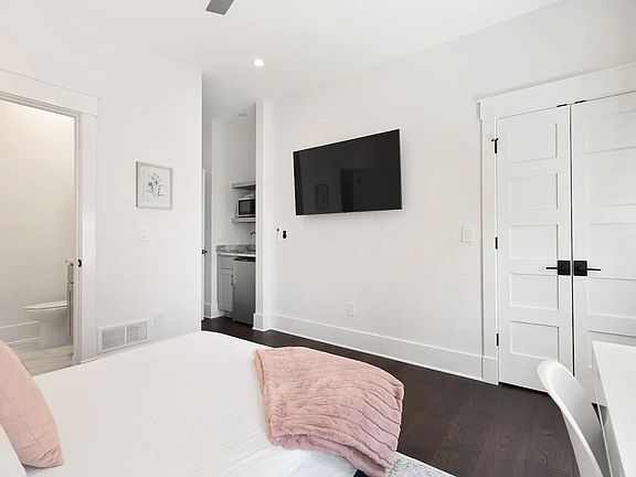 Newly renovated property located on King Street in the center of it all. This listing is for the Cooper Suite (A2). The Space The Cooper Suite is appointed with high-end furniture including premium plush bedding, hybrid mattress, and a 55" smart TV. The kitchenette includes quartzite countertops, sink, compact size refrigerator, microwave, two burner induction hot plate, Keurig coffee maker, essentials for light cooking, and service for 2. The full bathroom features a walk-in tiled shower with a 12" rainfall shower head. The closet includes an organization system suited for long-term guests. Off-street parking spaces are available for an additional charge. However, free on-street parking is also readily available on King Street and the nearest cross street. It is highly recommended that vehicles be economy sized as the driveway and parking spaces are tight. Uber and Lyft are readily available throughout the City. Other Things to Note - 4 security cameras (front entrance, parking area, up/down stairs hallways) - Motion-activated security lights on front corner and parking area - Wired internet (in addition to WiFi) and an outlet with 2 USB ports - Dimmable lights in bedroom, ceiling fan - Dedicated AC unit - Room darkening blinds - All utilities and fast Wi-Fi are included - No smoking of any kind on the property - Minimum lease of 6 months - Off-street parking available for $100/month (limited spaces)