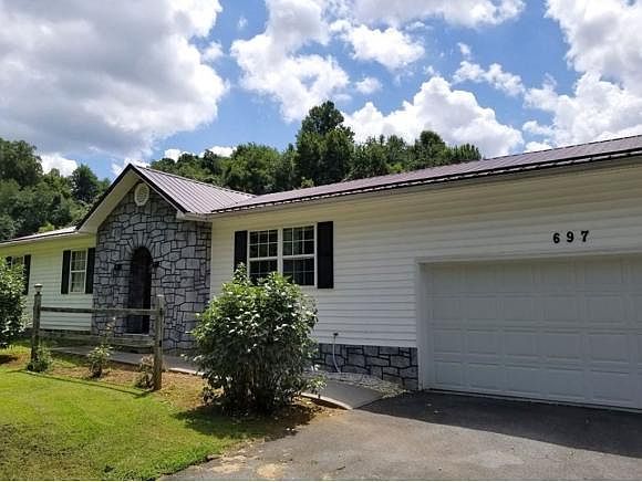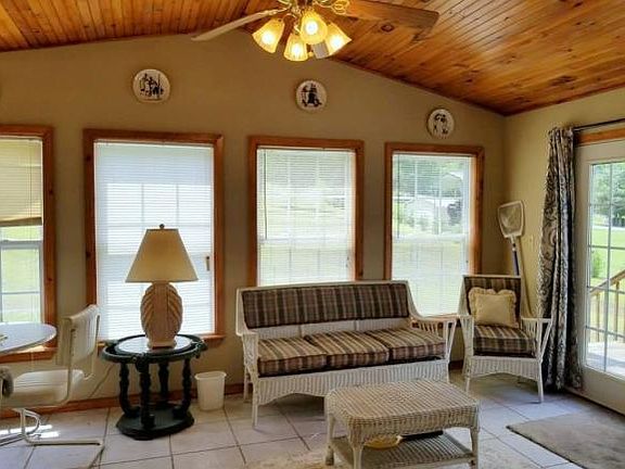 This single level home has some really nice features: Metal roof, welcoming foyer, large eat-in kitchen with buffet counter with storage, carved cabinet doors, large laundry room with walk-in closet, gas fireplace, super-nice heated sunroom. .69 acre lot with garden spot and 2 out buildings. Owner has planted lots of flowering trees and shrubs. Large garage.