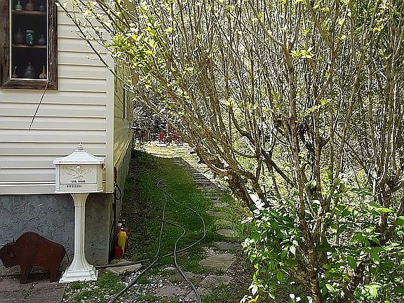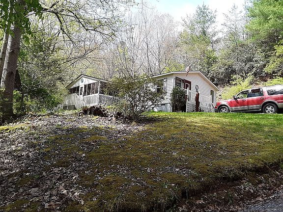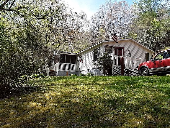This newly remodeled DWMH is filled with southern charm. Nestled amongst the trees up on a hill private and secluded. Has a front screen porch and a deck in back over creek with fire pit and storage shed. Inside is cozy with country style new pellet stove also original electric furnace two large a/c units and ceiling fans. Floors are wood vinyl, laminate and ceramic. Lots of flowers, vegetation wild blackberries.