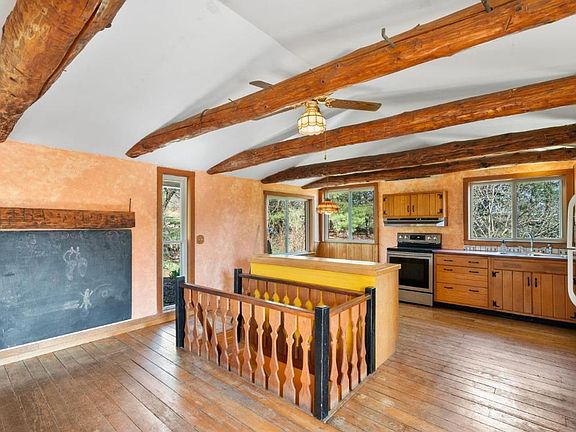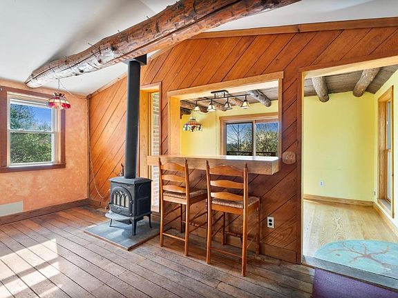 Solar powered home and organic farm. Enjoy a self-sufficient, utility-free life with modern conveniences. 3BR/1BA home set back from road, includes grid-tied solar panels, bountiful natural light, open floor plan, exposed beam ceilings and locally sourced hardwood floors. Ultra-efficient electric heat pumps heat in winter and cool in summer. 2 wood stoves add extra coziness. Large deck with beautiful views, native plantings and perennial beds, energy-efficient windows, and newer metal roof. 35 acres with mature woods, meadow and fields, managed as organic farm and CSA for 10 years. Includes: dozens of established and mature fruit and nut trees (apple, pear, plum, peach, chestnut, walnut); mature blueberry patch; dozens of berry bushes (raspberry, currant, gooseberry, chokeberry, cranberry); fenced 0.5 acre garden; hoop houses; outbuildings; pond for swimming or irrigation; scenic trails. 45 min to Ithaca, Binghamton, or Syracuse. High speed internet available for remote work.