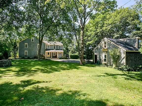Portsmouth is known for unique historical homes dating back to the 1700's. 697 Middle Rd is one such example. 3316 sq. of living on 3 floors, this center chimney colonial features 4 fireplaces, wide pumpkin pine floors throughout, 3 and ½ baths 2 great rooms, two staircases an office and west facing stone terrace off the kitchen perfect for watching the sunset. The park like setting designed by Island/Design consists of a total of 61,420 sq. and is divided into 2 lots, each with its own entrance and driveway. The 3 stall garage has a finished heated 320 sq. second floor. Conveniently located between East and West Main Rds. Provides easy access to all destinations. This compound has many options for buyers looking to invest in a home today with added value in the lot for the future.