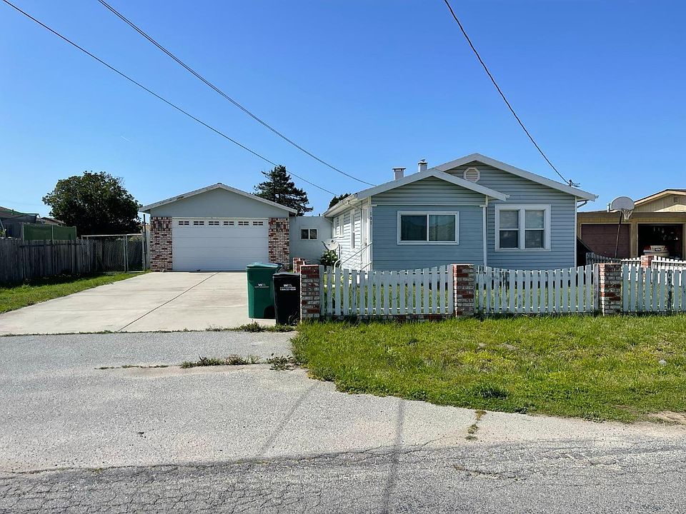 Single family home two bedroom / one bath, interior sq footage of 768 and a lot size of 10,264 sq ft. When you enter the home, you will do so through a covered Portch. Once inside you will see the living room and just past that is the spacious kitchen. Down the hall there are the two bedrooms with a bathroom that has a tub shower combo. Heading out the back behind the kitchen is a bonus room. Possible can be made into a third bedroom. There is also a laundry room off of the bonus room. Once you enter the back yard you will see there is a fence dividing the yard. Its large with lots of possible opportunities. The Garage is a double with a single pass, through door to the back yard. In the very back of the yard is a structure that was formerly used to house dogs. Go take a look at this property!!!