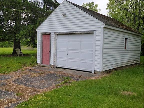 This 2BR 1BA home is on a large 1 acre lot and is waiting for a new owner. Older Bungalow style home in need of some personal touches. There are newer windows through out the home. The full basement can be finished for additional living space. The attic has a wood floor that could be used for extra storage or a possible living space with some renovation. The 1.5 car garage has a work bench. There is ductwork in place for a forced-air furnace and AC but that these units will need to be replaced. The property sits on a beautiful wooded one acre lot with plenty of Room for Chicken's, Sheep, Goats and Horses. The adjoining 1.86 acre lot is also for sale and could be combined with this purchase. The N side outside spigot draws from the well on the land parcel and will need severed unless land is also purchased. Don't let this one pass you by!! Schedule your showing today.