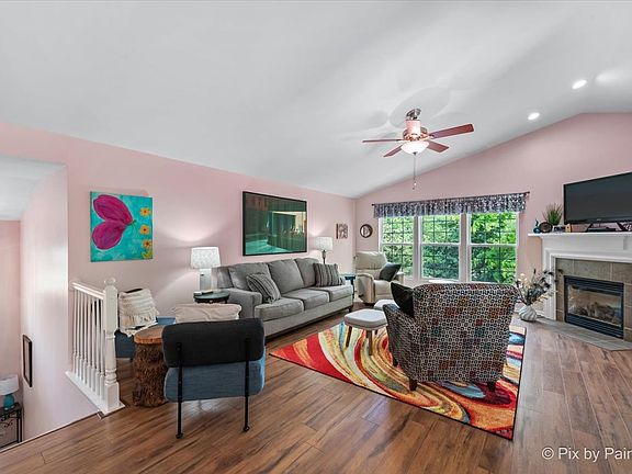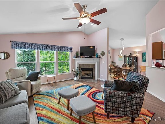 Welcome to the townhomes of Lakeside Pointe! Walk into this spacious, well maintained 3 bedroom, 2 bathroom 2nd floor, end unit ranch filled with natural light. You are greeted by a large living space with vaulted ceilings and gas fireplace that opens to a generous dining room. Kitchen features stainless steel appliances, granite counter tops and maple cabinets with access to a great outdoor deck space overlooking the walking path and green space. Walk through the double doors to the primary suite with large walk-in closet and ensuite bath featuring double sink vanity, separate soaker tub and glass shower. Two additional bedrooms with generous closet space and an additional full bath round out the unit. Brand new washer and dryer installed in Feb. 2023. Unbeatable location close to shopping, restaurants, Metra, and Three Oaks Recreation Park and more!