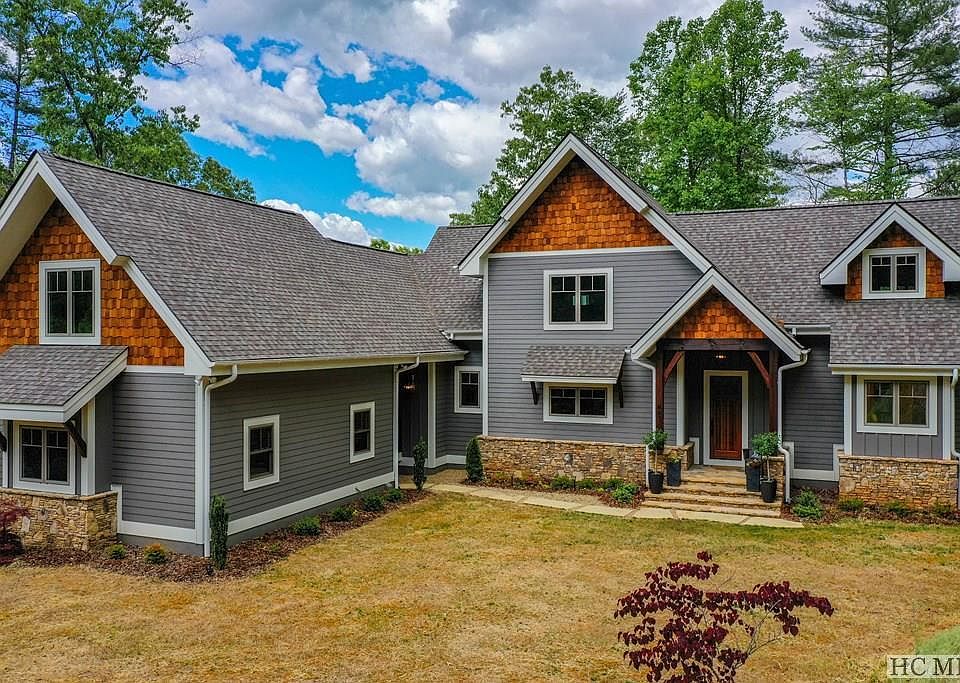 Gorgeous new construction home in a gated community in the mountains, close to town!!! If you've dreamed of owning a mountain retreat without sacrificing access to amenities, this home is for you! Custom-built and designed for entertaining, this home has plenty of room for your family and friends. No detail was spared which is evident as you walk into the main level living area. An open floor plan reveals a gracious living room and wood-burning stone fireplace. The luxurious kitchen offers top-end, new appliances for entertaining and is complete with a built-in wine cooler. Cozy up outside on the covered porch with another wood-burning fireplace as well. There are three large en suite guest rooms upstairs plus stylish office space and a quaint little sleeping alcove for extra guests. Large sunny owner's en suite bedroom is located on the main level with a deep soaking tub and walk-in tile shower. An attached two-car garage completes this beautiful home. NEW HIGH-SPEED FIBER INTERNET!!! Newly paved roads throughout The Cove at Flat Gap and several trails for exploring. Perfectly located close to several mountain towns including Sylva and Cashiers, NC, and just down the road from Western Carolina University! Across the street from the community is the Jackson County Recreational facility offering a plethora of activities for an active lifestyle (lots of exciting expansion is also planned for this rec center). A Builder's Warranty will be included for 12 months after purchase.